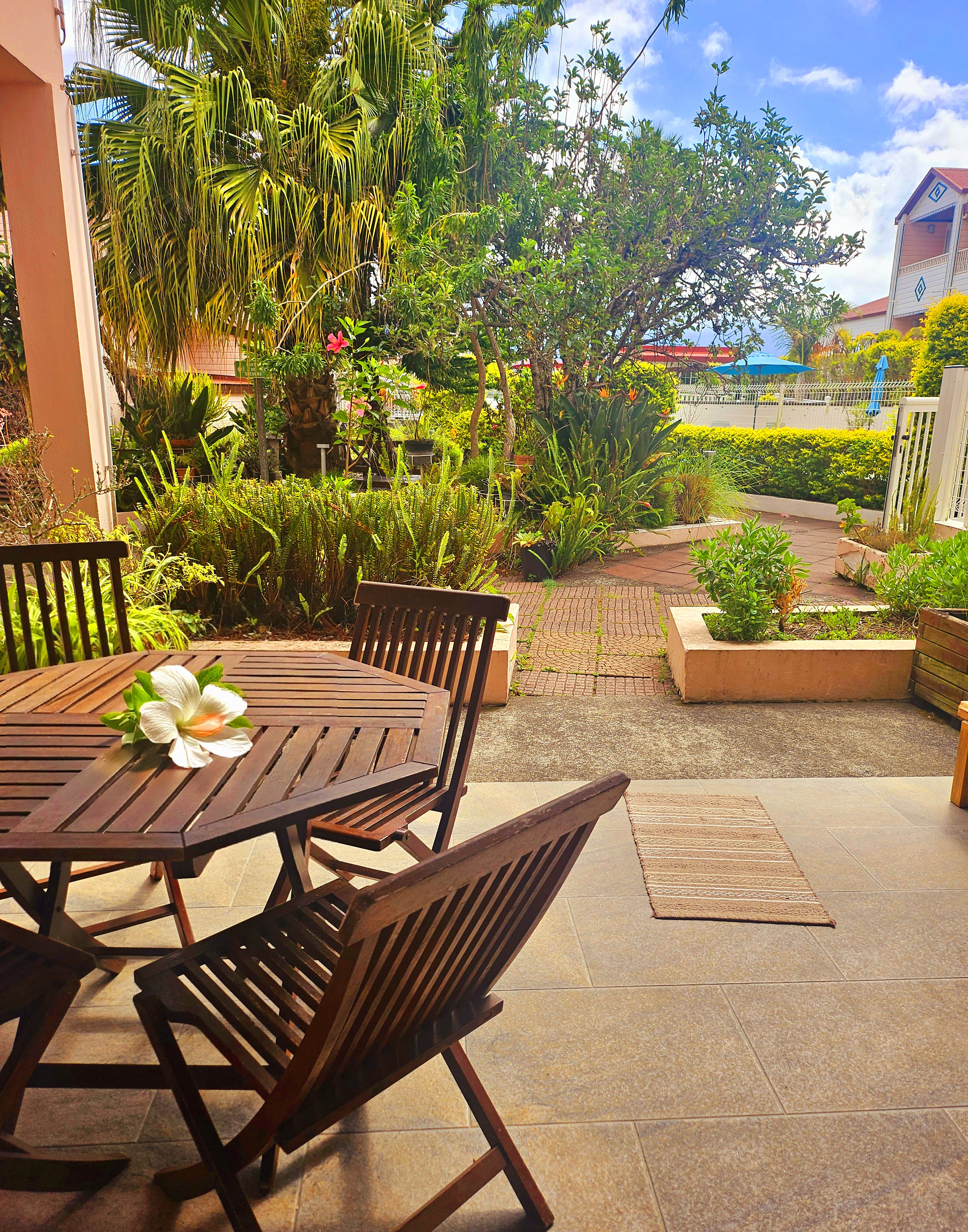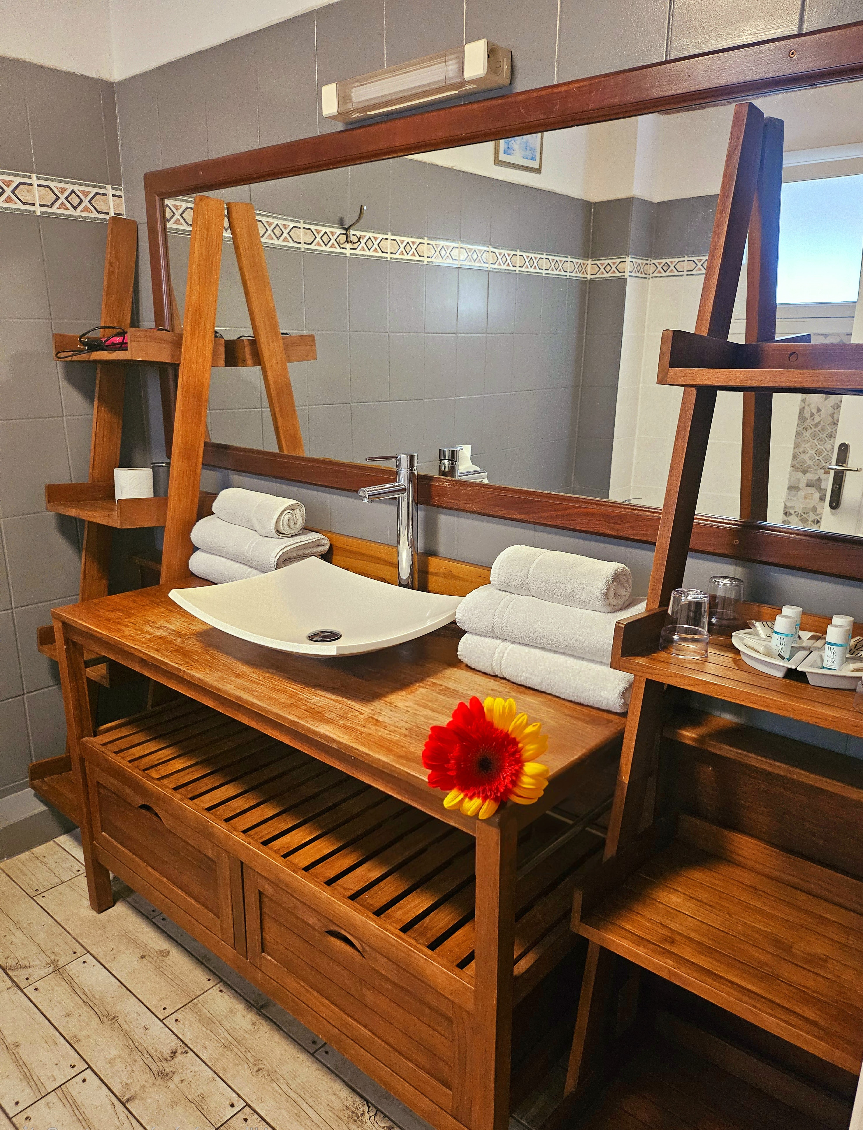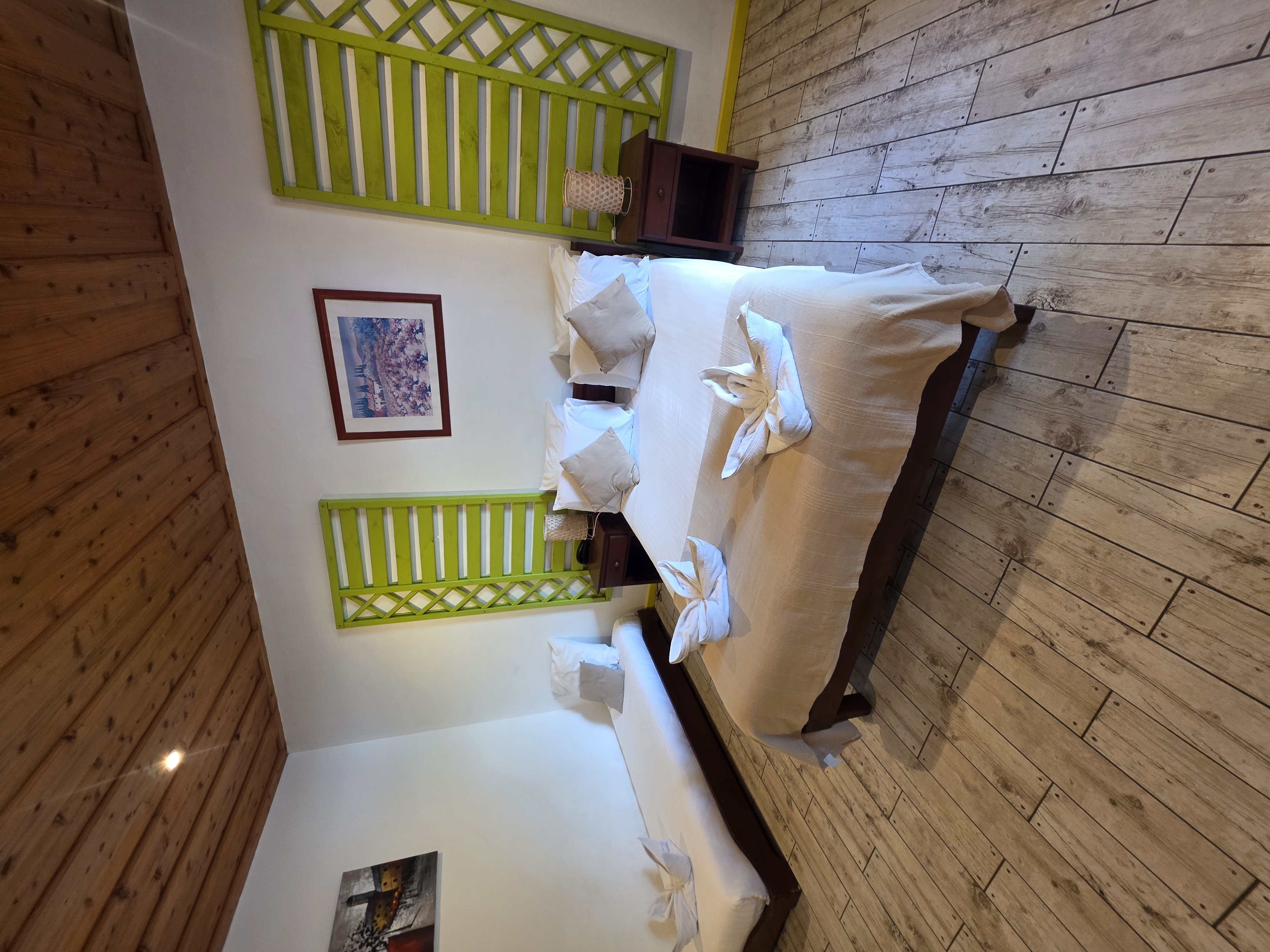 Zimmer für familien Vier Personen (26-32m2 ) (Doppelbett + 2 zusätzliche Betten- Wiege auf Anfrage 15€)  mit Terrasse 10m2 auf, mit einem Doppelbett und mit 2 zusätzlichen Betten ausgerüstet.